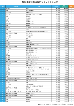 パーソルキャリア株式会社が運営する転職サービス「doda(デューダ)」(編集長:大浦 征也)は、「平均年収ランキング2022」を発表しましたので、お知らせいたします。本調査は、2021年9月~2022年8月の1年間に転職サイト「doda」のサービスに登録した約56万人のデータを元に、正社員として働く20歳~65歳までのビジネスパーソンの平均年収をまとめたものです。また、「doda 女性の転職・求人情報Woman Career」ではその中から女性のデータをピックアップし、「女性の平均年収ランキング2022」としてまとめ、公開しています。