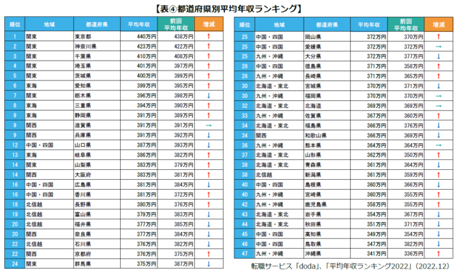 「女性の平均年収ランキング2022」https://doda.jp/woman/guide/heikin/