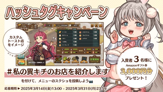 ポッピンゲームズジャパン株式会社が、App Store / Google Playで現在配信中の『異世界キッチン 行列のできる現代料理のお店』は、公式Xにて開催された「ハッシュタグキャンペーン ~あなたのおすすめを教えてください~」の結果を発表したことをお知らせいたします。