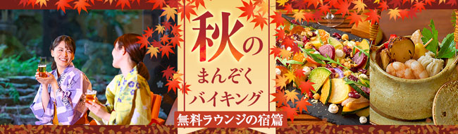 心身で感じている夏の疲れを、無料ラウンジと秋のまんぞくバイキングで癒す温泉旅に出かけませんか?
