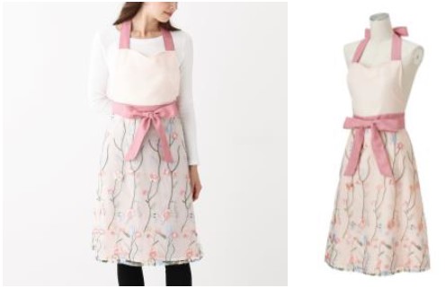 ふわっとしたチュールをスカートにあしらったエプロンです。花柄の刺繍と前面のガーリーなリボンが華やかで、お料理をする気分も上がりそう。おもてなしの日にもぴったりなエプロンです。(他、ブラウンの2色展開)