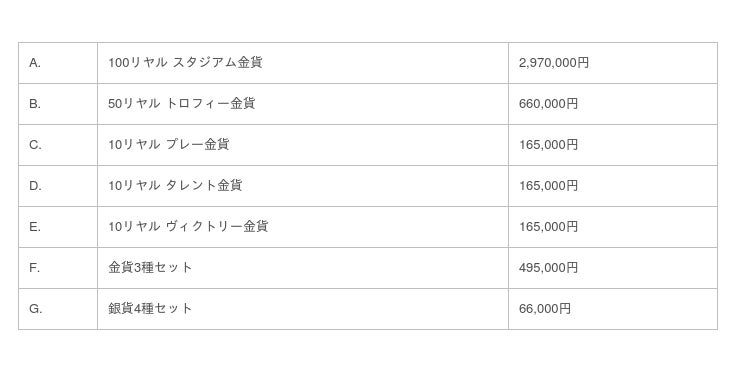また、本記念コインは大会の舞台となる8つの近代的なスタジアムをはじめ、ダイナミックなサッカーのプレーやアラビア文化特有の繊細なアートワークを随所に取り入れた、スポーツの躍動と緻密な表現を融合したデザインとなっております。
