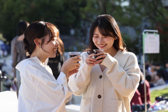 芝生の上で秋の訪れを感じながら思い思いにグルメやお酒を堪能