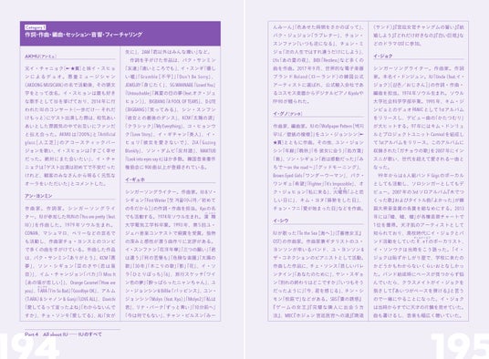 ♦巻末にはデビューから現在までの歩みを網羅したIU事典「All about IU」も収録。