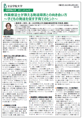 本学では、教員陣の最先端の研究から社会に還元すべき情報を「オピニオンレター」として発行しています。この度発行するVol.34では、作業療法士の立場から考える発達障害との向き合い方について紹介します。