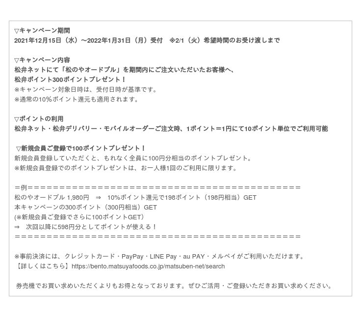 ■「松のやオードブル」ご注文で、次回「ロースかつ定食」が実質0円!?