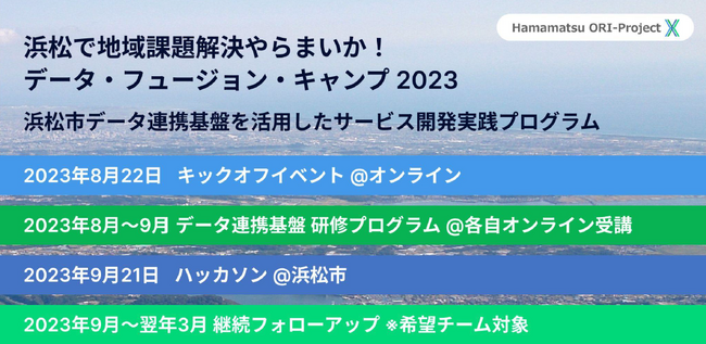 2023年度の浜松市データ連携基盤を活用したサービス開発実践プログラムの中心となる開発イベントです。