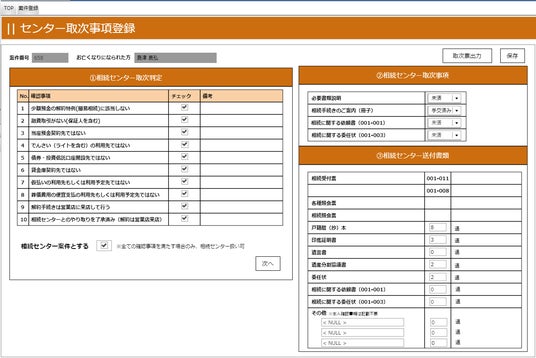 ・これまで勘定系システムから平均10枚程度の照会票を出力して確認していた作業が、必要な情報だけを集約した1枚の相続照会票で完結。