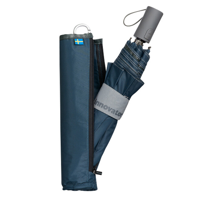 ハンズオリジナルサイズのイノベーター晴雨兼用自動開閉傘。片手が塞がっていても使いやすいワンタッチで開閉可能な自動開閉タイプ。傘袋にはカラビナが付いており、濡れた傘をカバンの外に付けることも可能です。