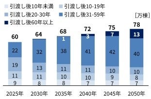 当社の住宅事業は2026年に55周年を迎え、5年後の2031年には初期に建築いただいたセキスイハイムは、引渡し後60年を迎えます。さらに、2040年には、引渡し後60年以上のセキスイハイムが3万棟を超える見込み(※4)となり、長期的な維持・管理の重要性が一層高まっています。
