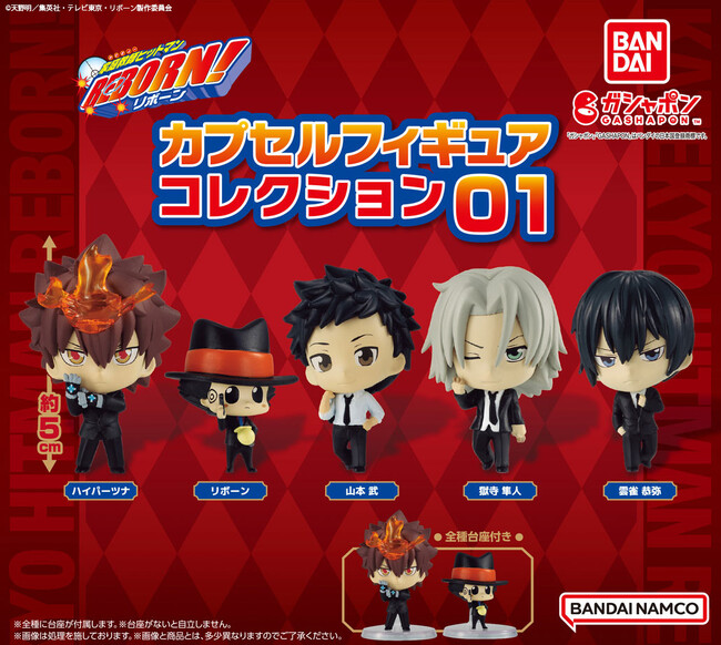 株式会社バンダイ ベンダー事業部(本社:東京都台東区)は、TVアニメで放送をしていた『家庭教師ヒットマンREBORN!』から、「家庭教師ヒットマンREBORN! カプセルフィギュアコレクション01」(1回 500 円・税10%込、全5種)を2024年7月第3週から、第2弾「家庭教師ヒットマンREBORN! カプセルフィギュアコレクション02」(1回 500 円・税10%込、全4種)を2024年8月から順次、全国のガシャポンバンダイオフィシャルショップ、玩具売り場・量販店・家電店などに設置されたガシャポン自販機シリーズにて発売いたします。
