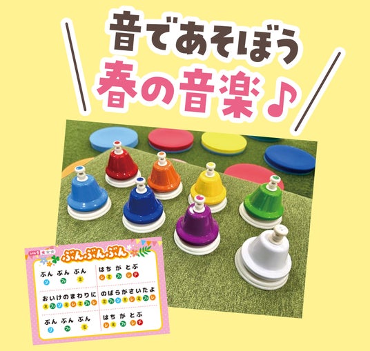 ミュージックベルやミュージックパッドを使って、親子で一緒に演奏できます。みんなが知っている春にちなんだ曲の楽譜も用意しているため、初めてでもチャレンジできます。笑顔あふれる時間をお楽しみください。