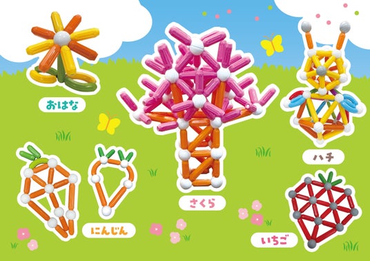 カラフルなブロックを使って、春をテーマにしたさまざまなかたち作りを楽しめます。親子で一緒に「できた!」の瞬間を楽しめます。
