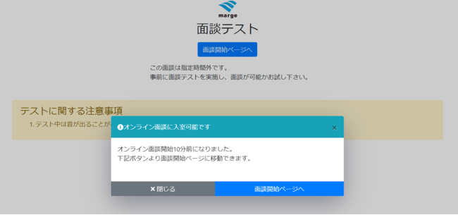 人材派遣・人材紹介・請負会社をDXするWeb面接ツールSOKUMENに、テストページ(面接開始前に接続状態を確認出来る画面)に面接開始10分前アラート機能を追加しました。
