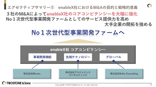 6月末に実行した、当社のグループ会社である株式会社enableX(以下 enableX)によるコンサルティング会社3社のM&Aの目的と戦略的意義についてです。