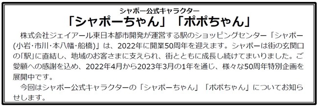 開業50周年特設サイトとシャポーホームページ内に「シャポーちゃん」「ポポちゃん」のページを新設し、キャラクターの紹介を行っています。