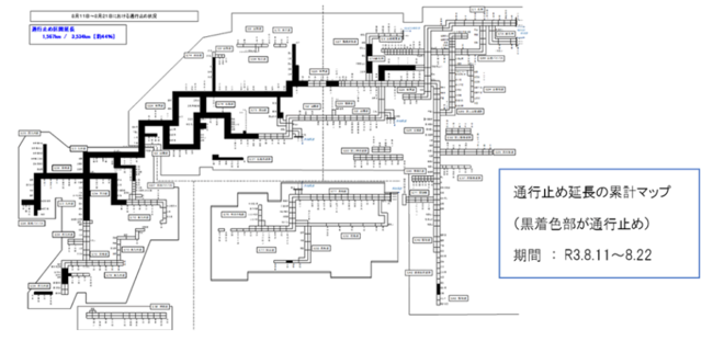 ◦通行止め総延長 21路線 約1,567km (管内総延長の約44%)