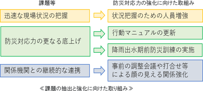 ◦過去の対応を振り返り、防災対応力の強化に取組んでいます。