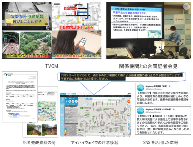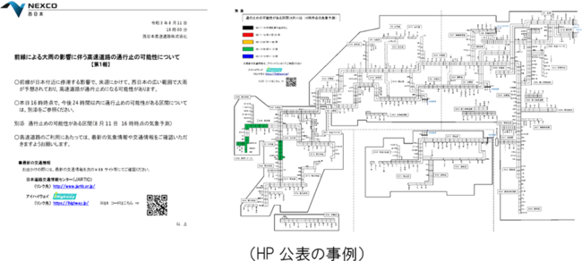 また、記者発表や会社HPなどにより、災害発生の有無や通行止めの実施及び解除等に関する情報を発信してまいりますので、最新の情報をご確認ください。