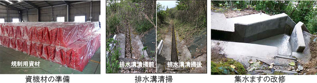 ◦集中豪雨や台風等への対策として、以下のような準備に取組んでいます。