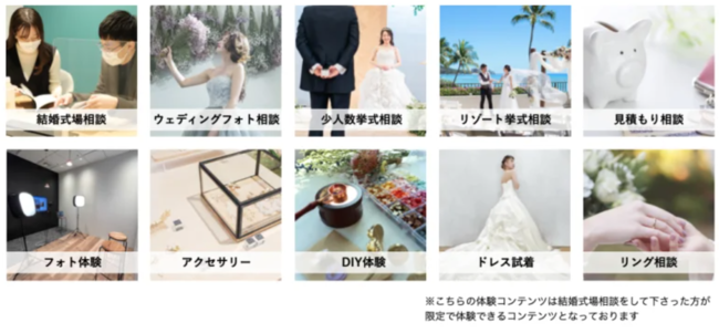 それぞれの花嫁さまにあった相談方法で、体験コンテンツや嬉しい豪華特典もご用意しております。
