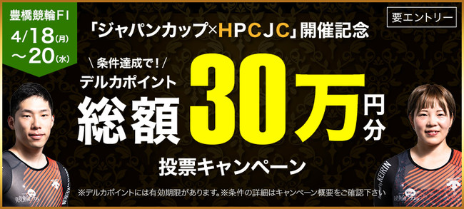 - 4月18日~20日に開催される豊橋競輪「ジャパンカップ×HPCJC」で総額30万ポイントの電子マネー「デルカ」をプレゼントするキャンペーンを開催 -