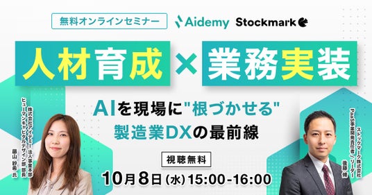 製造業向けAIエージェント『Aconnect』を提供するストックマーク株式会社(以下、「当社」)はオンラインセミナー『人材育成×業務実装 ― AIを現場に“根づかせる”製造業DXの最前線』を10月8日(水) に開催致します。