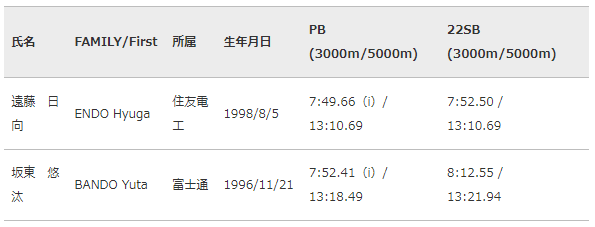 男子3000mには、オレゴン2022世界選手権日本代表で、昨年5000mで13分10秒69の日本歴代2位の記録をマークした遠藤日向(住友電工)、男子3000m障害物には昨年ダイヤモンドリーグファイナル4位の成績をおさめた三浦龍司(順天堂大学)、女子1500mにはオレゴン2022世界選手権で3種目(800m・1500m・5000m)出場の田中希実(豊田自動織機)、女子3000mにはアスタナ2023アジア室内選手権3000m 3位の山本有真(名城大学)らが出場予定です。