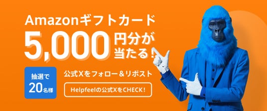 ヘルプエイプのCHO就任と新CM公開を記念して、Helpfeelの公式X(旧Twitter)ではフォロー&リポストキャンペーンを実施。Amazonギフトカード5000円分を20名様にプレゼントいたします。