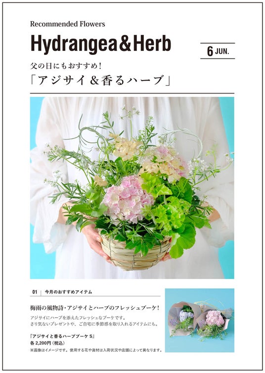 ■父の日にもおすすめ!6月のレコメンドフラワー「アジサイ&香るハーブ」