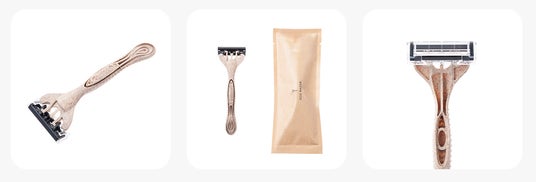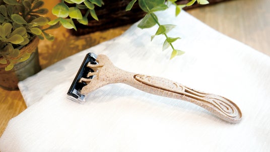 柄部分にもみ殻を約30%配合したエコなカミソリ。歯ブラシ同様、もみ殻特有の素材感がおしゃれで、見た目からエコを訴求できます。さらに首振り式を採用し、もみあげ部分からあご先までしっかりと密着。快適な剃り心地を実現します。実用性とおしゃれさを両立させた製品です。