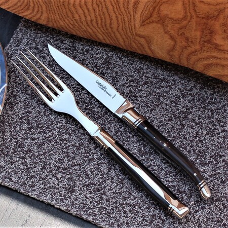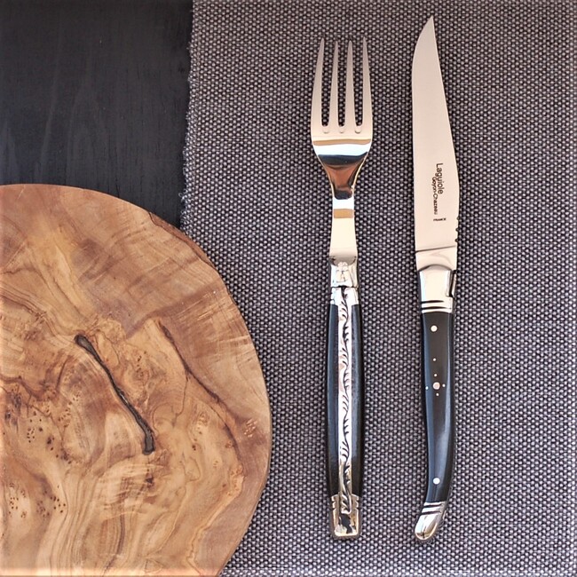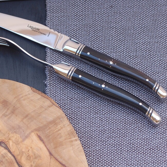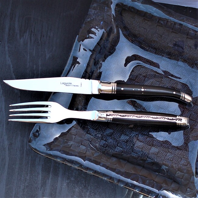 ライヨール ゴヨン プレステージ ノアール(noire・CORNE) ステーキナイフ、フォークSET フランス製 GOYON