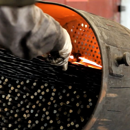 ステンレス棒を熱し鍛造(叩き出し)で成形します