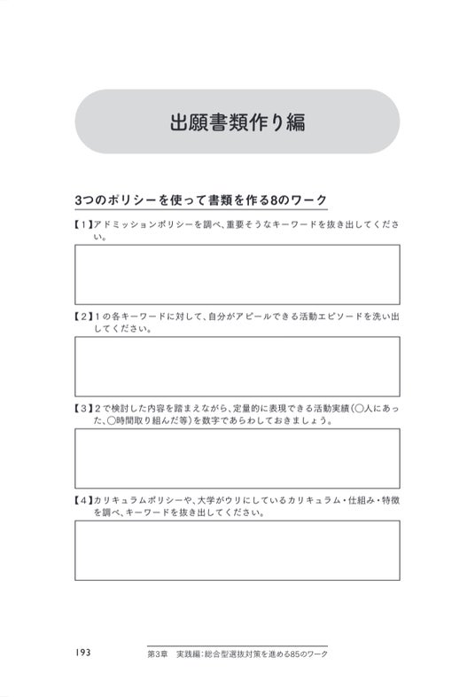 総合型選抜は大学合格のための手段ではなく、「これからを生きるための武器を手に入れる場」であると本書は考えます。だからこそ、単なる試験対策ではなく、大学に進学した後、さらには社会に出た後にも活きる力を育てることを目的としたアプローチを提示しています。