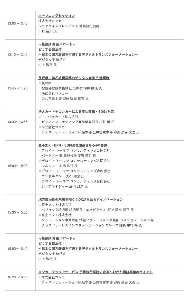 ※本セミナーは同分野におけるトップランナーであるコンカー社が例年開催する「SAP CONCUR FUSION EXCHANGE」と共同開催とすることで、より多くのナレッジを産官学にお届けすることを目指しています。1日目は「自治体編」、2日目は「高等教育機関編」として実施し、それぞれで変革の最前線で活躍する担当者や有識者を招聘し、戦略、ビジョン、現場でのノウハウ、実際の成果などについて共有いただきます。