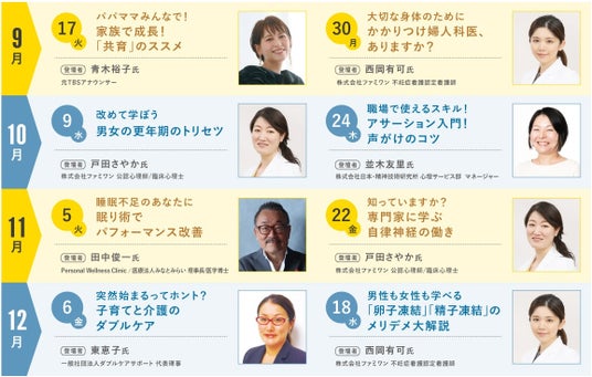 昨年度に引き続き、オンライン妊活相談サービス「ファミワン※2」との共創プログラムとして「オンラインセミナー」及び「ZOOMカウンセリング」などのプログラムを展開します。