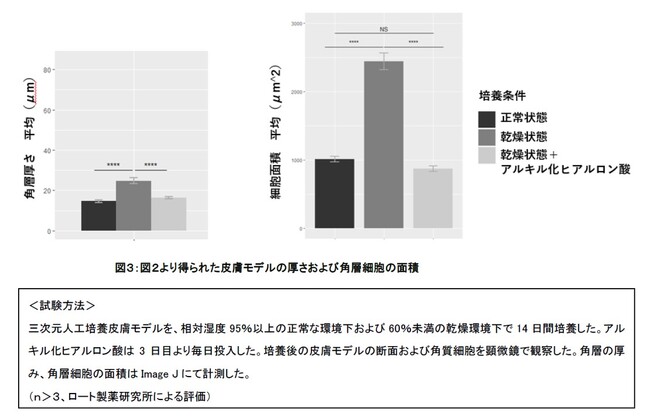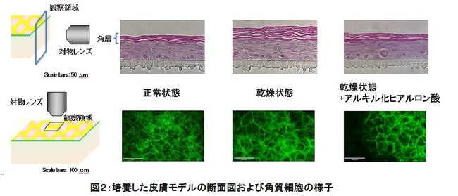 本研究成果により、アルキル化ヒアルロン酸は角層の形成をコントロールする作用があり、乾燥条件下において角層形成を正常化するという新たな機能を見出しました。