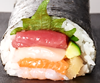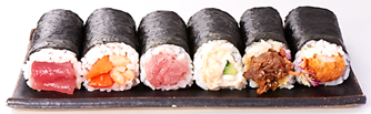 海鮮巻」、「活〆穴子とふっくら玉子の和風巻」の3種類の太巻を一巻ずつ盛り込んだお得な1人前のセット商品です。