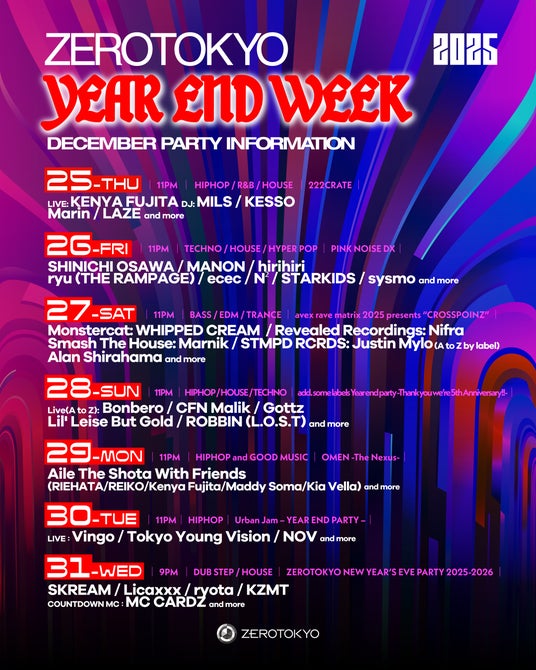 2025.12.31(水) ZEROTOKYO NEW YEAR’S EVE PARTY 2025-2026