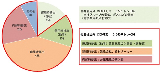 当社グループの温室効果ガス排出量については、自社が直接・間接に排出するスコープ1,2は約15%程度で、サプライチェーンで排出するスコープ3が大半を占めます。特に、竣工・売却物件の建築時排出(スコープ3-1,3-2)、売却物件の将来排出(スコープ3-11)は全体の62%を占め、各年度の竣工・売却物件のラインナップにより大きく変動するため、3年間の平均排出量を算出し、単年度の結果と合わせて開示することにいたしました。来年度以降もESGレポートなどを通じて積極的に情報開示してまいります。