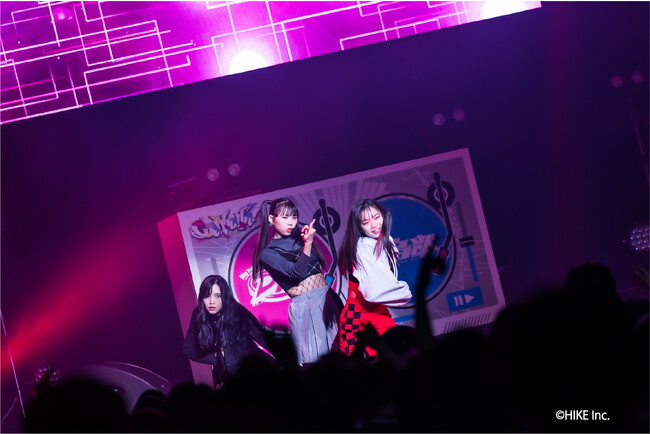 ライブで初公開されたイントロダクション映像のあとにステージに登場した3人は、ダンスパフォーマンスでデビューの足跡を刻むと、続いてオリジナル曲「NDA」を初披露。K-POPおよびガールクラッシュをベースしたエッヂの効いたサウンドに、彼女たちの「ありのままの強さ」を表現するパワフルなダンスをあわせて、会場を盛り上げました。