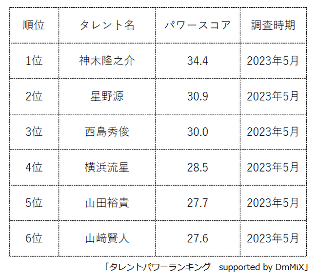 本ランキングは、2023年5月度に実施したタレント調査データ(一部過去実施データ)を利用し、タイトルに応じてランキング形式でまとめたものです。