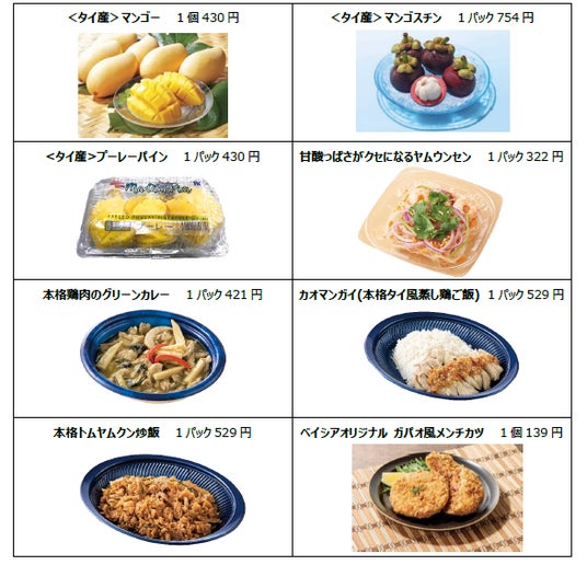 ■対象商品一例 : マンゴー、プーレーパイン、カオマンガイ(本格タイ風蒸し鶏ご飯)、ベイシアオリジナルガパオ風メンチカツ、ベイシアプレミアムタイ風焼きそばパッタイ、A-LINEえびフライ 他