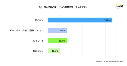 「2025年の崖」という言葉をしっていますか?と質問したところ、「知らない(55.8%)」、「知ってるが、詳細は理解していない(16.9%)」を合わせると72.7%という結果となりました。