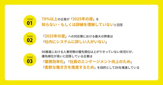 「2025年の崖」を目前に、多くの企業に対してDXの実現が求められる中、本調査では70%以上の企業がこの危機を十分に理解していないという結果が出ました。