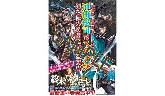 第10回戦 沖田総司VSスサノヲノミコトを存分に堪能することができる豪華なA3ポスターだ。この機会に応募して第22巻発売をお祝いしよう。