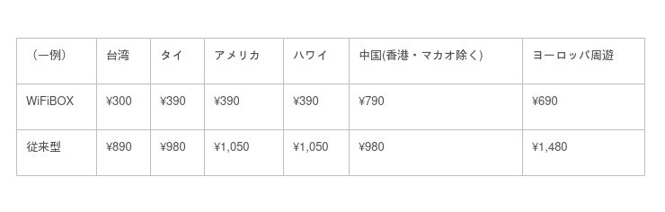 ※500MBの一日あたりのレンタル料。弊社で提供していた「Wi-Ho!」を従来型とし、比較。
