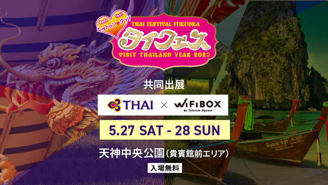モバイル通信のクロスボーダー・ソリューションを世界規模で提供する株式会社テレコムスクエア(本社:東京都千代田区 代表取締役:吉竹 雄次 以下、当社)のWi-Fiレンタルサービス「WiFiBOX」は、タイ国際航空(以下、タイ航空)と共同で、2023年5月27日(土)・28 日(日)に天神中央公園 貴賓館前エリアにて開催される「タイフェスティバルFUKUOKA & VISIT THAILAND YEAR 2023」に出展いたします。