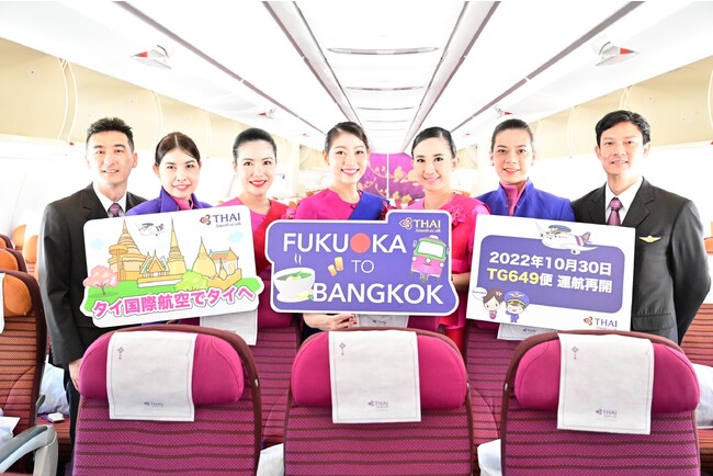 現在、タイ国際航空は、福岡を含み、成田/羽田/関西/中部より、バンコクへ直行便を毎日7便運航しております。