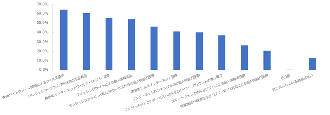 サイバー攻撃やインターネットウイルスの被害を受けたことがある利用者に、具体的な被害についても調査したところ、「Webサイトやメール閲覧によるウイルス感染」(47.8%)が最も高くなりました。次いで「クレジットカードやスマホ決済の不正利用」(29.0%)、「偽警告によるインターネット詐欺」(19.8%)、「フィッシングサイトによる個人情報流出」(17.7%)と続く結果となりました。